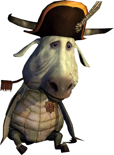 - Istnieją figury z Fałszywym Żółwiem widziane w kilku miejscach w grze, np. w Vale of Tears i Londynie.