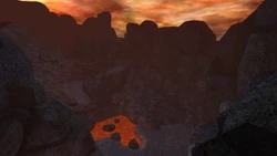 The Land of Fire and Brimstone was a fiery domain of rock and ash, with lava bursting its banks at every corner. The sky was orange, reflecting the fierce lava below, and enemies were abundant. Further on, the lava became more and more apparent, making areas of land much more scarce.