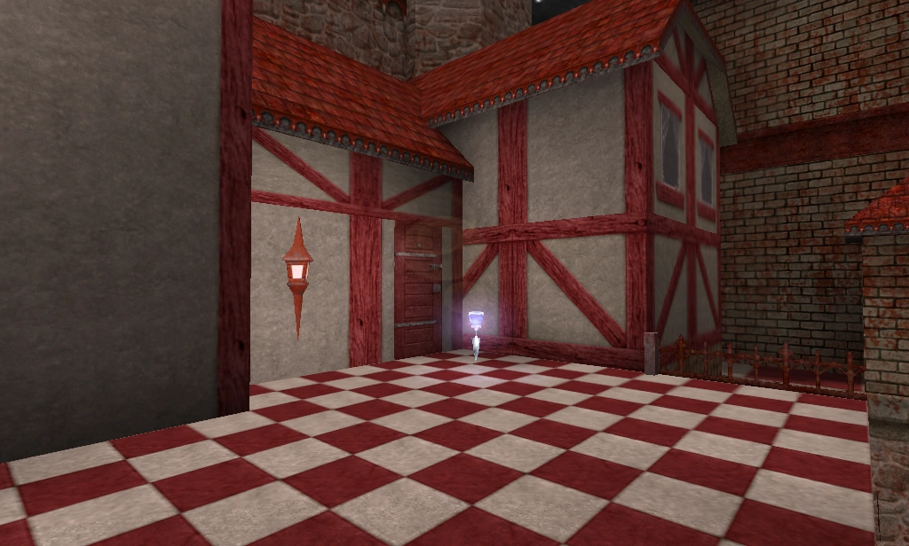 Cross the bridge to the next tower and turn left. Slaughter the Red Pawns on the next bridge. Enter the red door. Pick up the third Demon Die. Go through two more red doors and look out of the window to see the White Queen executed. You're too late. Continue down the hall as it twists and turns. A Bishop and two Knights attempt to halt your revenge mission. Ascend a short staircase and turn right. Carefully contend with two Red Rooks (on the ground) and one Red Bishop (above). Descend a short staircase, turn right, and go up another short one.